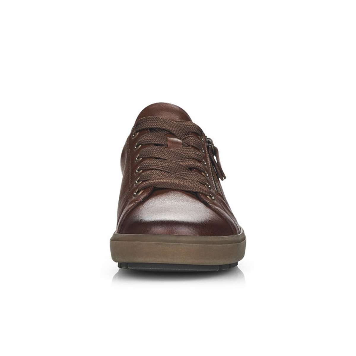 Detailné informácie Obuv REMONTE - jedná sa o vyššiu radu značky RIEKER, táto obuv sa vyznačuje vynikajúcou kombináciou vrchných materiálov. Zvršok vyrobený z hladkej kože je priedušný a nepremokavý, doplnený logom značky. Funkčný zips a šnurovanie slúžia pre jednoduché obutie, aby ste mohli čo najskôr vyraziť na svoje pochôdzky. Vyberateľná stielka je z pamäťovej peny, ktorá je mäkká a prispôsobí sa tvaru chodidla. Štýlová podrážka vysoká 3 centimetre je flexibilná a ľahká. Kúpu tejto obuvi nebudete ľutovať.