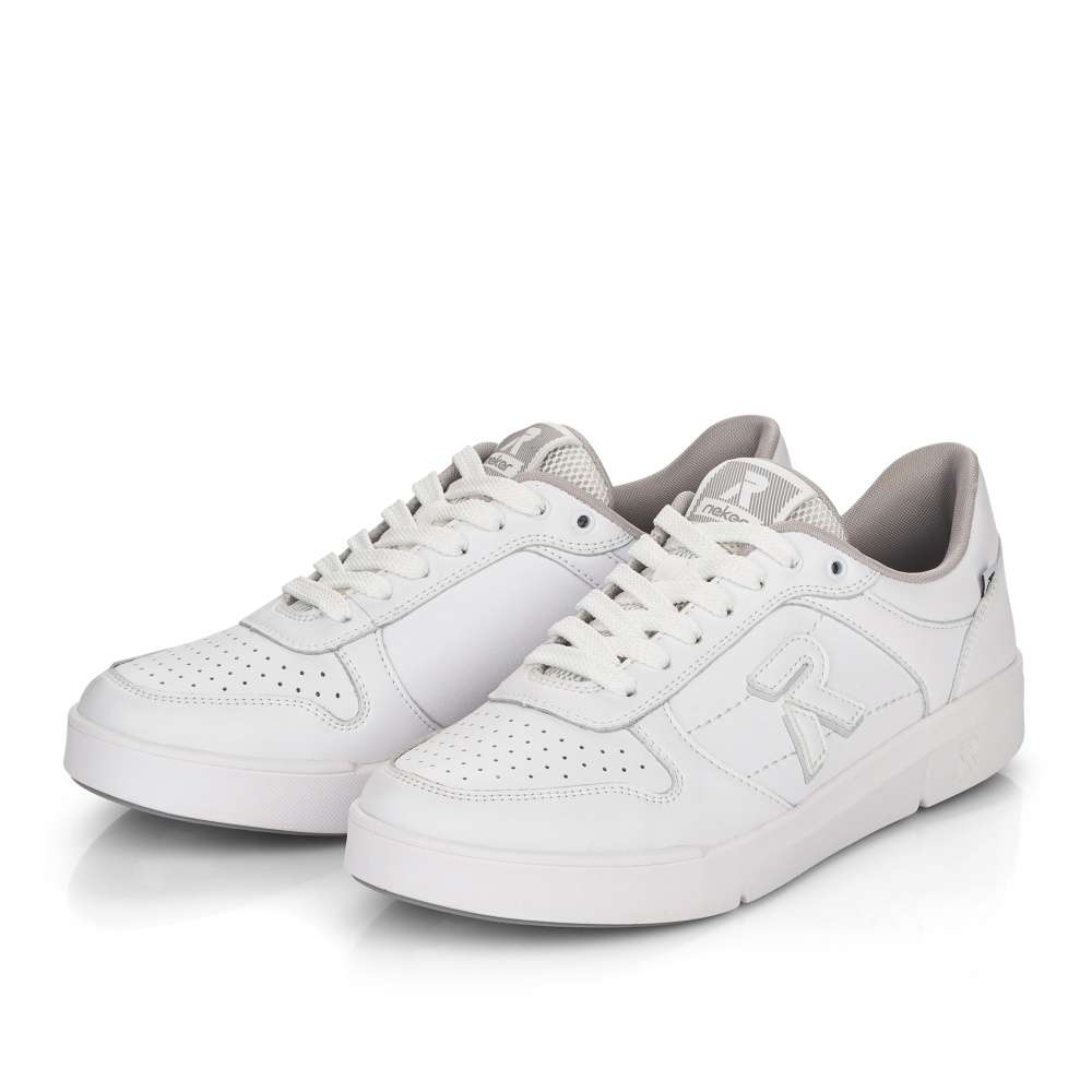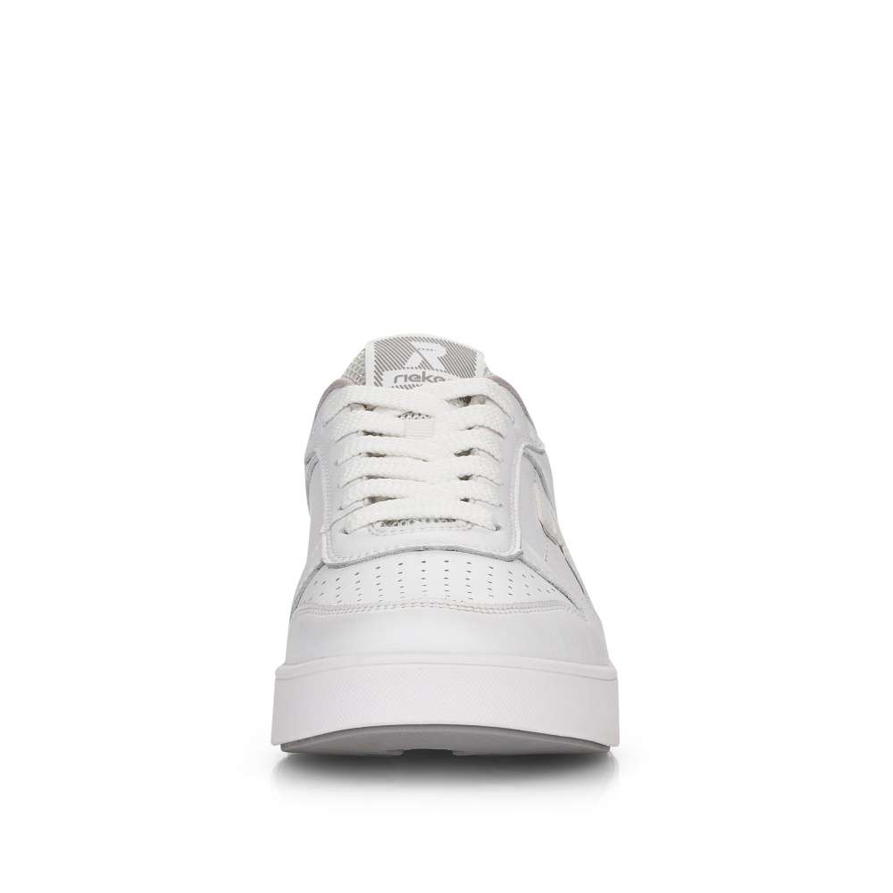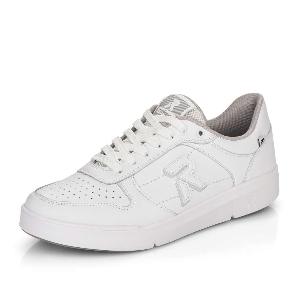 Základom každej skrinky na obuv sú funkčné tenisky. Ponúkame Vám tieto praktické a vysoko pohodlné topánky značky Rieker. Sú zdobené logom značky na boku topánky, na jazyku a na podrážke. Na prednej časti topánky sa nachádza povrchová perforácia. Zvršok je poťahovaný kožou a je kombinovaný s ďalšími materiálmi. Šnurovanie je klasické pomocou šnúrok, vďaka ktorým môžete topánku dokonale prispôsobiť Vašej nohe. Pohodlie pri chôdzi zaistí vyberateľná pamäťová stielka. Chystáte sa na celodennú prechádzku? Tieto tenisky Vás pri nej určite nesklamú.