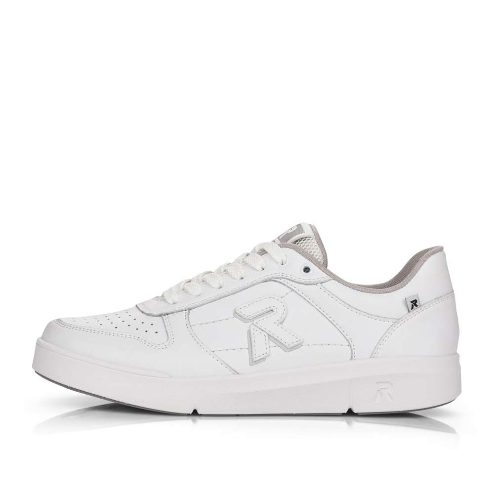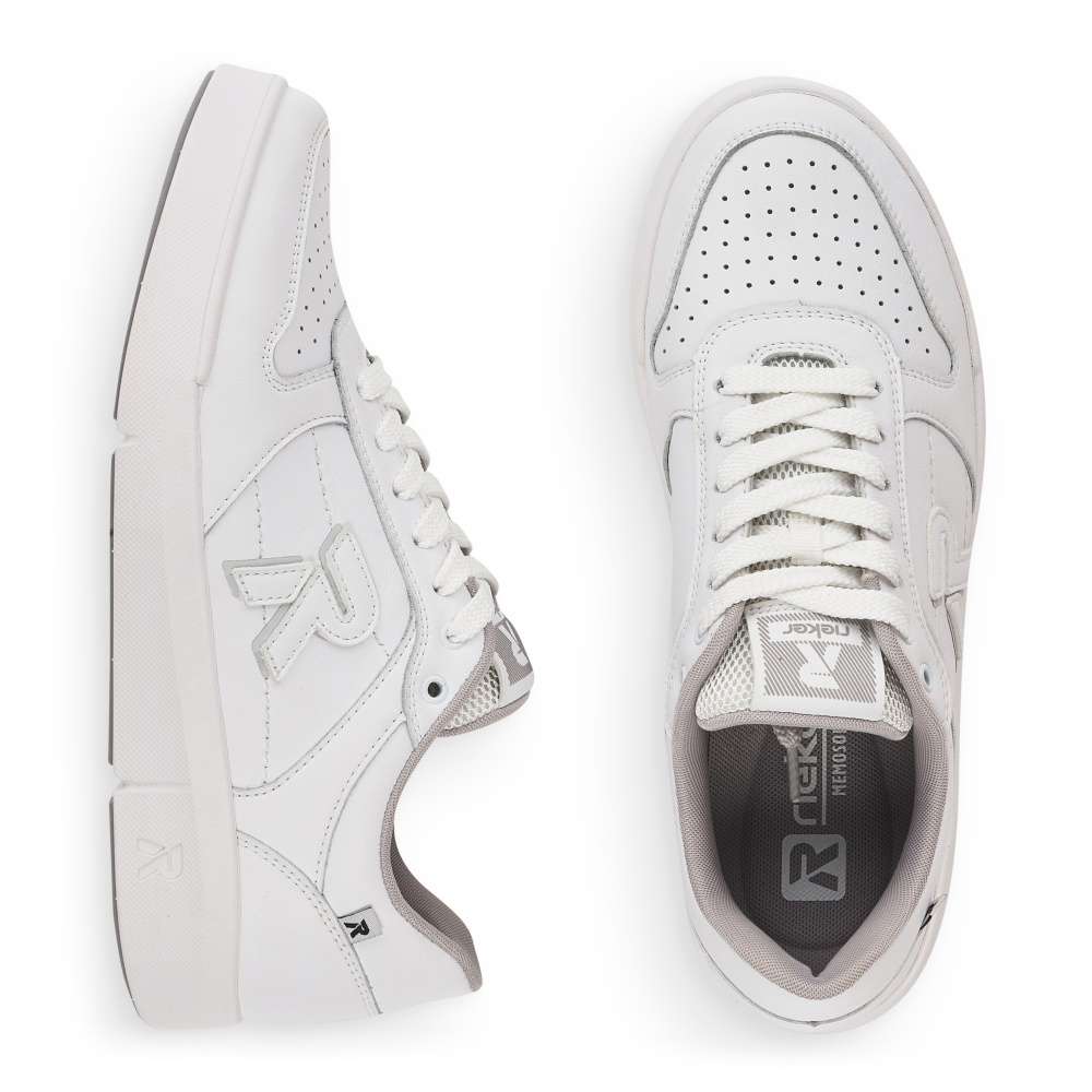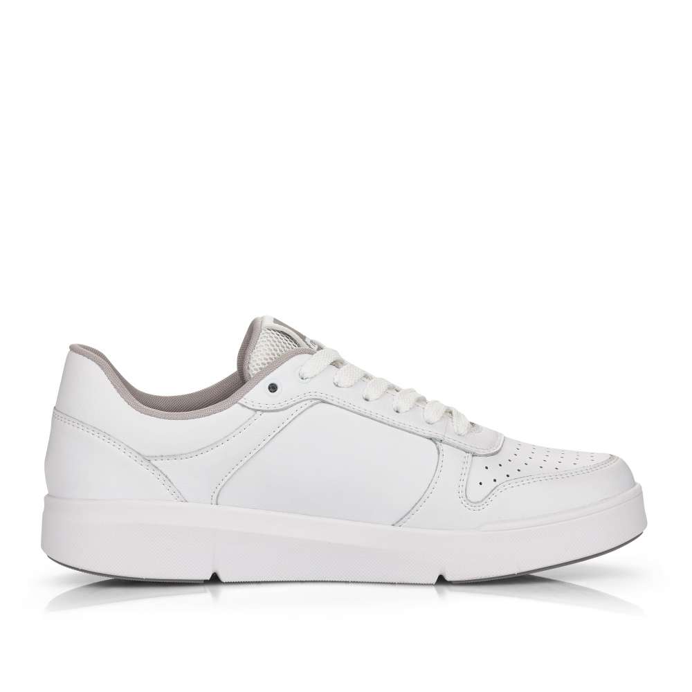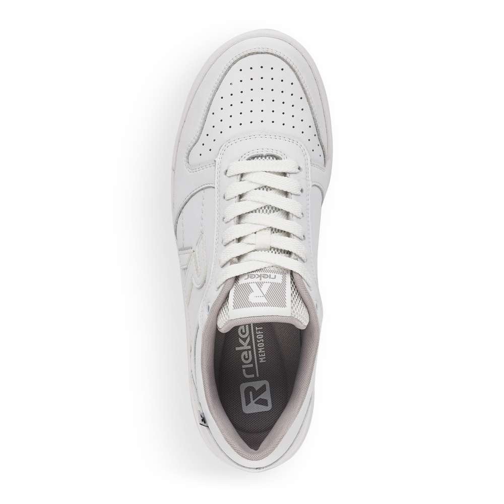 Základom každej skrinky na obuv sú funkčné tenisky. Ponúkame Vám tieto praktické a vysoko pohodlné topánky značky Rieker. Sú zdobené logom značky na boku topánky, na jazyku a na podrážke. Na prednej časti topánky sa nachádza povrchová perforácia. Zvršok je poťahovaný kožou a je kombinovaný s ďalšími materiálmi. Šnurovanie je klasické pomocou šnúrok, vďaka ktorým môžete topánku dokonale prispôsobiť Vašej nohe. Pohodlie pri chôdzi zaistí vyberateľná pamäťová stielka. Chystáte sa na celodennú prechádzku? Tieto tenisky Vás pri nej určite nesklamú.