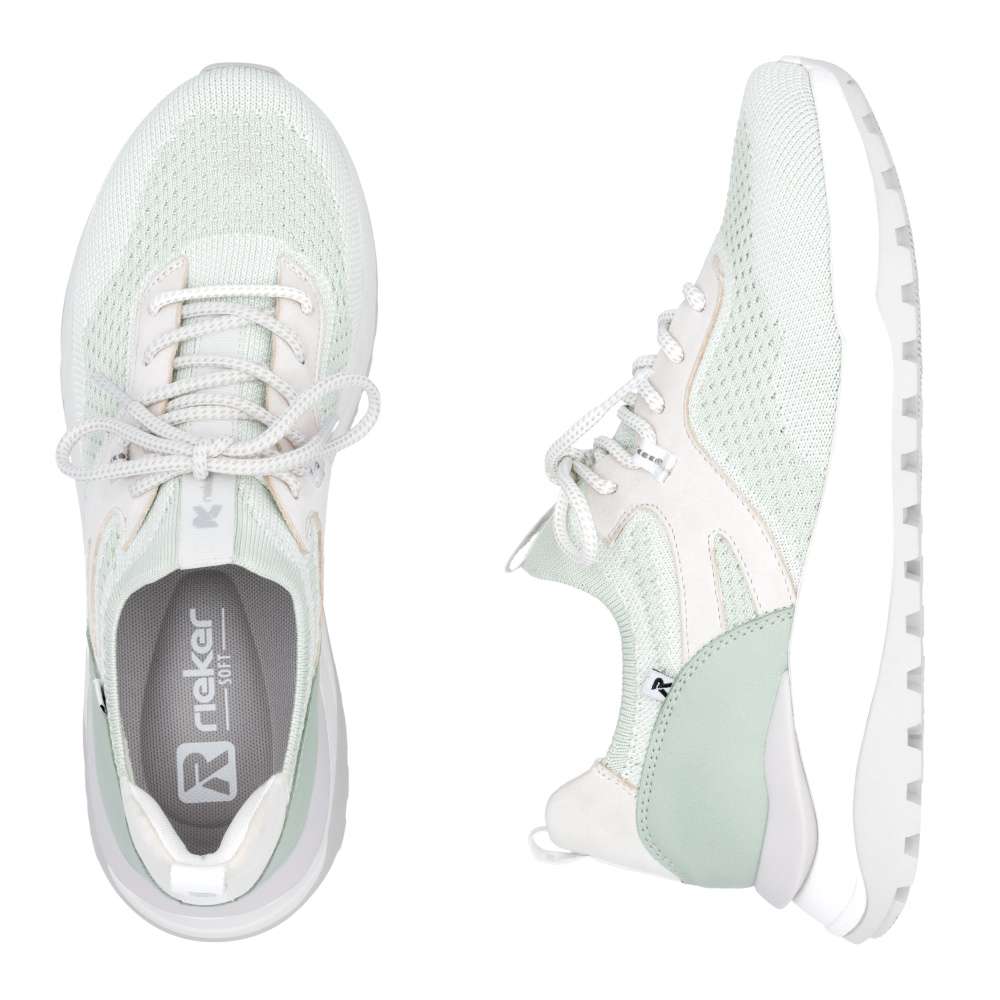 Užívajte si športový štýl s topánkami značky RIEKER. Doprajte svojim nohám dokonalý komfort s týmito teniskami RIEKER. Svieža zelená farba pôsobí štýlovo a pružný horný lem zaisťuje ľahké obúvanie, pričom šnurovanie slúži ako dekoratívny prvok. Vyberateľná mäkká stielka poskytuje maximálne pohodlie a starostlivo navrhnutá podošva zaistí stabilnú oporu pri každom kroku. Dokonalá súhra moderného vzhľadu a maximálneho pohodlia vďaka funkčným technológiám to sú topánky RIEKER Sport. Technológia: Antistress – vďaka štyrom antistresovým vlastnostiam – ľahkosti, pružnosti, priestrannosti a vynikajúcej absorpcii nárazov – vám topánky RIEKER ponúknu komfortnejšiu chôdzu. Rieker Soft – unikátna stielka vyrobená z priedušného materiálu, ktorá svojim tvarom a materiálom zaistí pocit pohodlia pri celodennom nosení. Táto topánka je vybavená vyberateľnou stielkou.