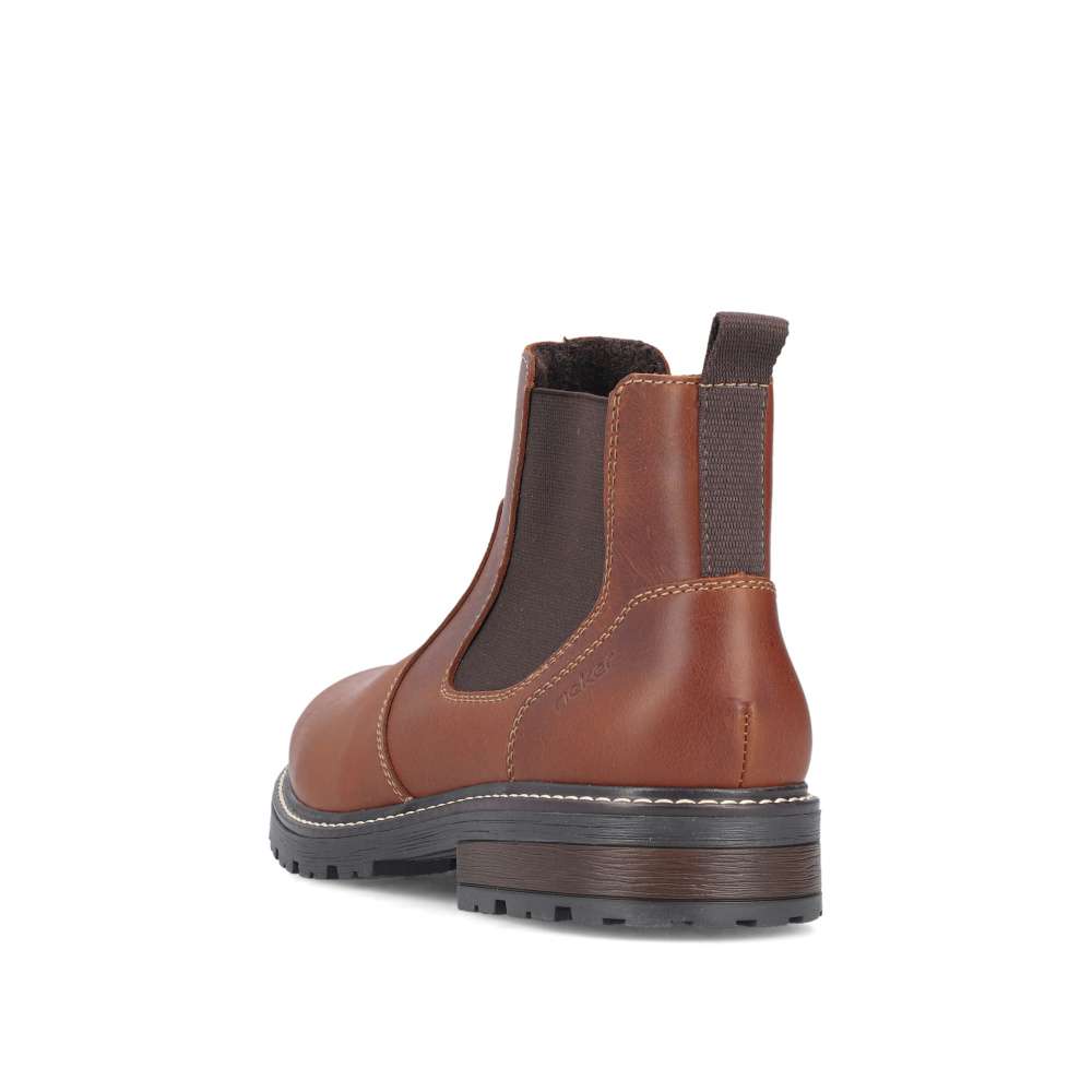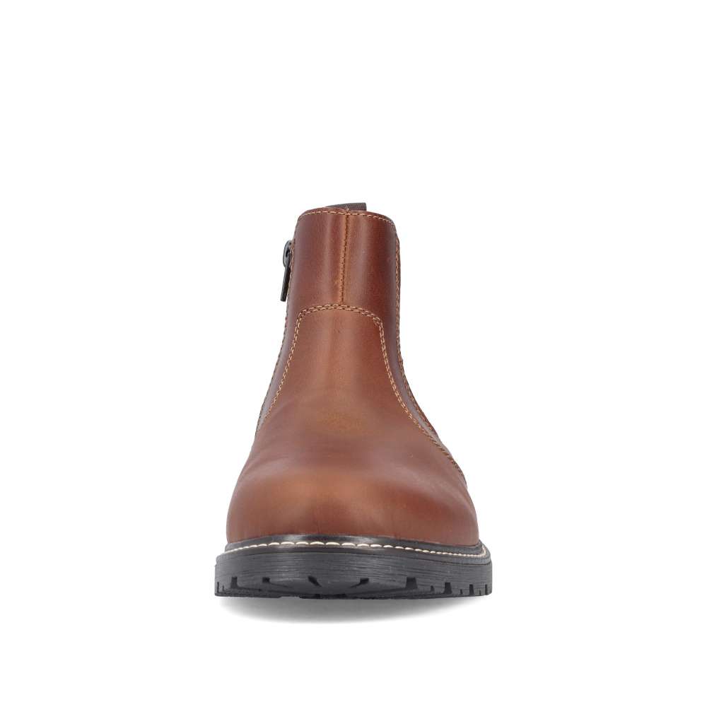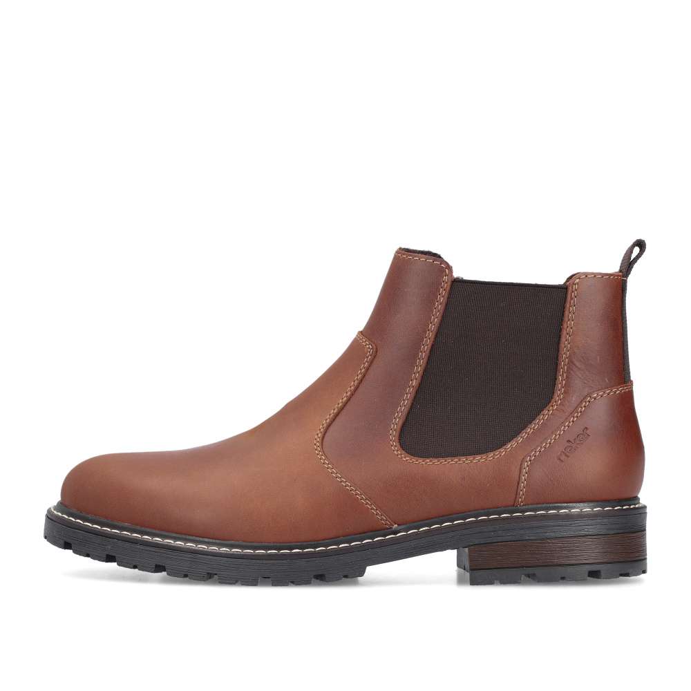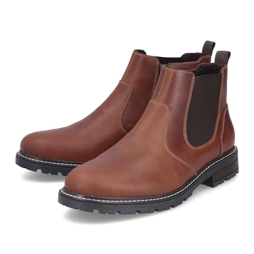 Tieto členkové topánky RIEKER sú skvelou voľbou pre mužov preferujúcich štýlový vzhľad a pohodlie v jednom. Hnedý kožený zvršok dopĺňa pružná časť z vonkajšej časti topánky a zips z vnútornej časti, ktoré uľahčujú obutie a zároveň sa prispôsobia tvaru nohy. Vnútorná textilná podšívka a podošva tlmiaca nárazy ponúka pohodlie počas celého dňa. Vďaka univerzálnemu dizajnu ich bez problémov skombinujete s džínsami aj nohavicami pre každý bežný deň v znamení nadčasového štýlu a dokonalého pohodlia. Technológia: Antistress – vďaka štyrom antistresovým vlastnostiam – ľahkosti, pružnosti, priestrannosti a vynikajúcej absorpcii nárazov – vám topánky RIEKER ponúknu komfortnejšiu chôdzu.
