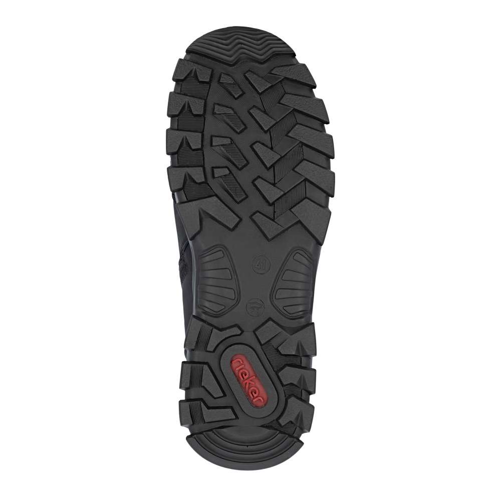 Tieto členkové topánky značky RIEKER sú navrhnuté pre mužov, ktorý nechcú robiť kompromisy medzi vzhľadom a komfortom ani v chladnejšom počasí. Ich dizajn v nadčasovom štýle sa hodí ako k mestskému outfitu, tak aj na bežné denné nosenie. Zvršok čiernej farby je doplnený TEXovou membránou – tá zabezpečuje ochranu pred vlhkosťou a zároveň umožňuje nohám dýchať. V mrazivých dňoch oceníte vnútornú zateplenú podšívku, ktorá udrží vaše nohy v teple za každého počasia. Komfortnými prvkami sú - vyberateľná stielka, praktické šnurovanie umožňujúce ideálne prispôsobenie topánky tvaru nohy, bočný zips zaisťujúci rýchle a pohodlné obutie bez zbytočného zdržania. Podošva s tlmením nárazov prispieva k stabilite a komfortu pri každom kroku, profilovaný vzor podrážky zároveň zlepšuje trakciu, čo oceníte najmä na nerovnom teréne. Tieto topánky sú ideálnou voľbou pre každodenné nosenie – ponúkajú spoľahlivú ochranu, komfort a módny vzhľad, ktorý ľahko zladíte s rôznymi štýlmi oblečenia. Technológia: Antistress – vďaka štyrom antistresovým vlastnostiam – ľahkosti, pružnosti, priestrannosti a vynikajúcej absorpcii nárazov – vám topánky RIEKER ponúknu komfortnejšiu chôdzu. Rieker TEX - funkčná vrstva, vďaka ktorej je topánka nepremokavá a napriek tomu priedušná. Táto topánka je vybavená vyberateľnou stielkou.